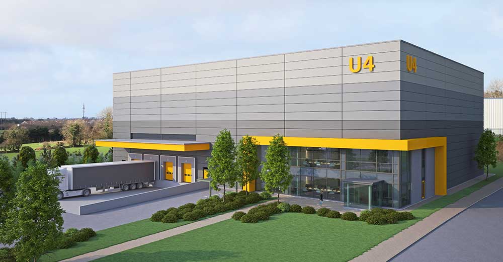 4 no. new high bay warehouse/ industrial buildings. Architect designed high specification detached facilities. From 1,955 SqM (21,044 SqFt) up to 6,732 Sqm (72,474 SqFt)
